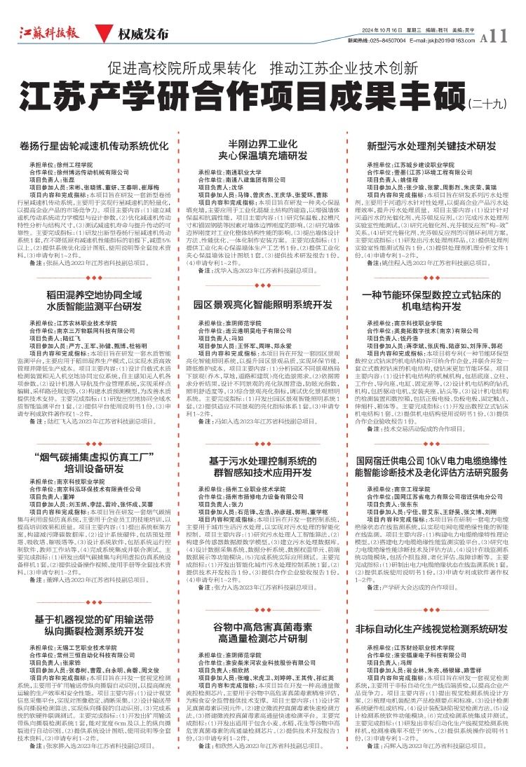 江苏科技报在2024年第74期报道了Beat365官网姚佳程博士主持的江苏省产学研合作项目《新型污水处理剂关键技术研发》。