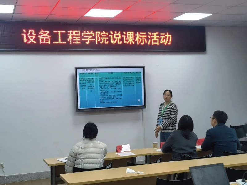 为保障课程标准制订质量,确保课程标准执行效果,促进教师更好掌握课程内涵和教学方法,12月4日下午Beat365唯一官方网站开展了说课表活动。常州工程职业技术学院党委委员,纪委书记徐黎明教授,Beat365唯一官方网站院长刘大君,教务处副处长李静,高质量办主任张少瑜,Beat365唯一官方网站教学副院长韩颖及各教研室专任教师参加了活动。此次活动吸引了全院各学科教师的积极参与,为教师们提供了一个相互学习、交流与展示的平台。